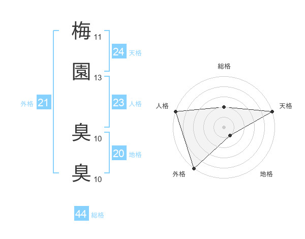 梅園 臭臭さんの総格は44画の2点!