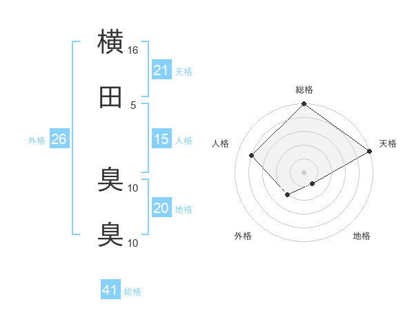 横田 臭臭さんの天格は21画の5点!