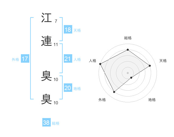 江連 臭臭さんを姓名の画数から五運を鑑定