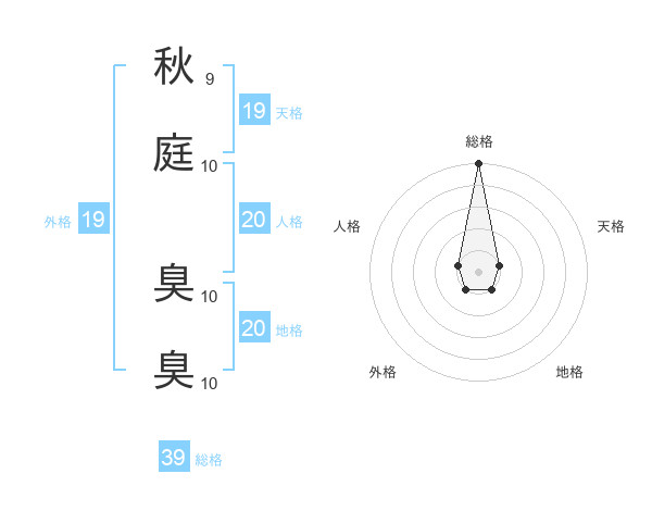秋庭 臭臭さんの総格は39画の5点!