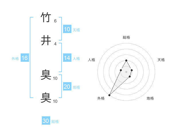 竹井 臭臭さんの総格は30画の2点!