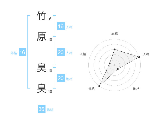 竹原 臭臭さんを姓名の画数から五運を鑑定