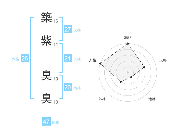 築紫 臭臭さんの総格は47画の5点!