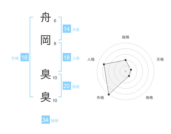 舟岡 臭臭さんの総格は34画の2点!