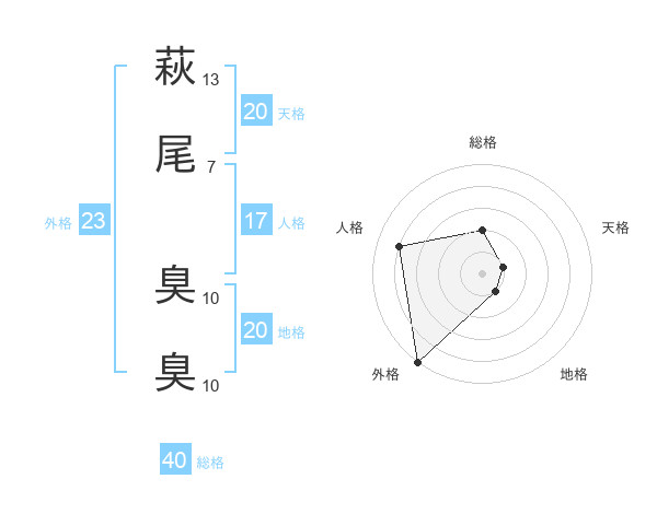 萩尾 臭臭さんを姓名の画数から五運を鑑定