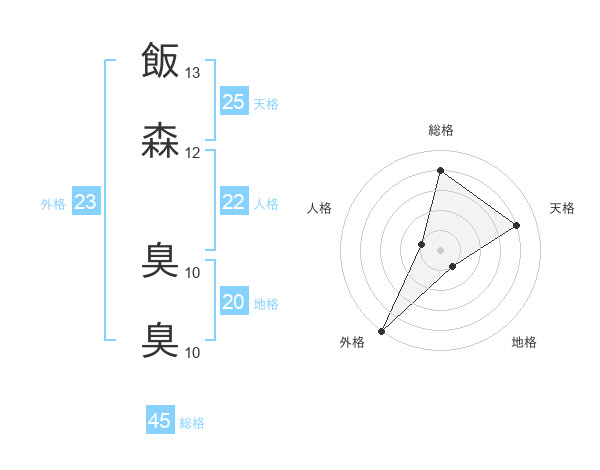 飯森 臭臭さんの総格は45画の4点!