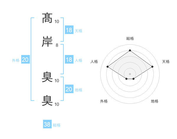 髙岸 臭臭さんの総格は38画の4点!