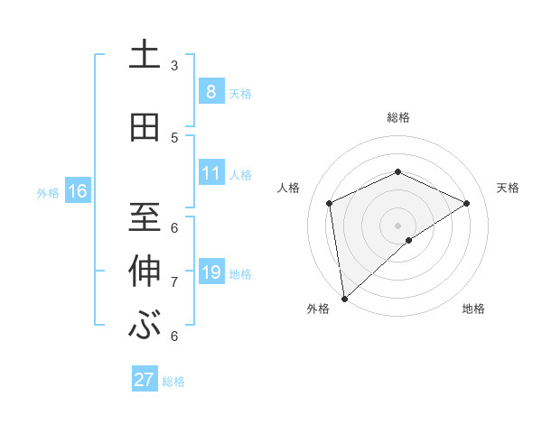 土田 至伸ぶさんを姓名の画数から五運を鑑定