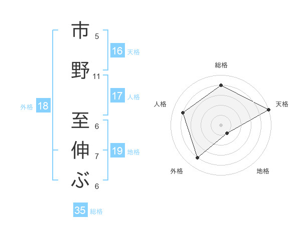 市野 至伸ぶさんを姓名の画数から五運を鑑定