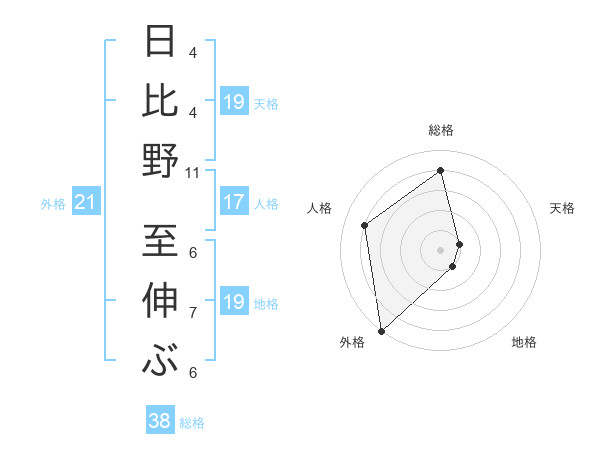 日比野 至伸ぶさんを姓名の画数から五運を鑑定