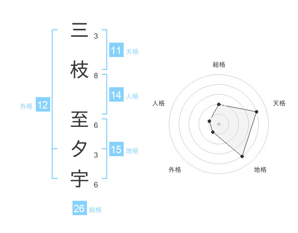 三枝 至夕宇さんを姓名の画数から五運を鑑定