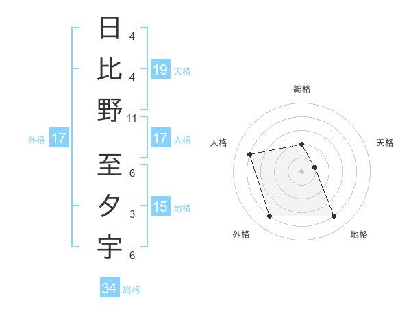 日比野 至夕宇さんを姓名の画数から五運を鑑定