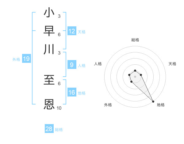小早川 至恩さんの総格は28画の1点!