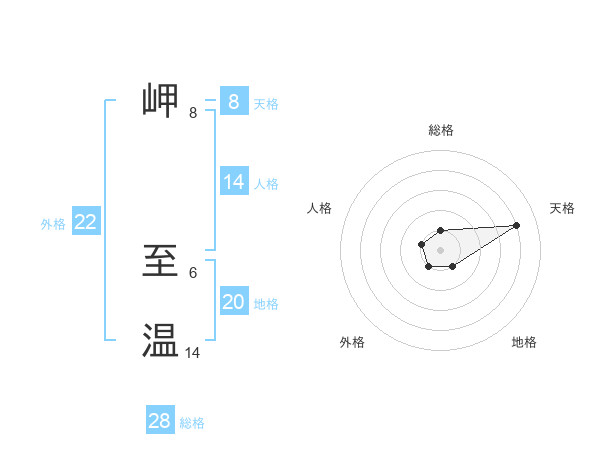岬 至温さんの天格は8画の4点!