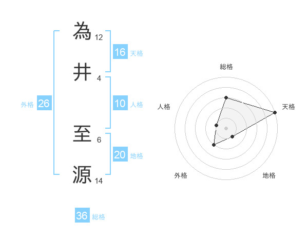 為井 至源さんの天格は16画の5点!