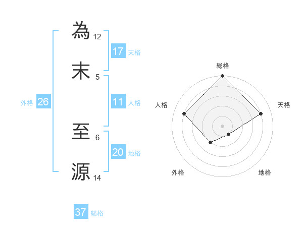 為末 至源さんの総格は37画の5点!