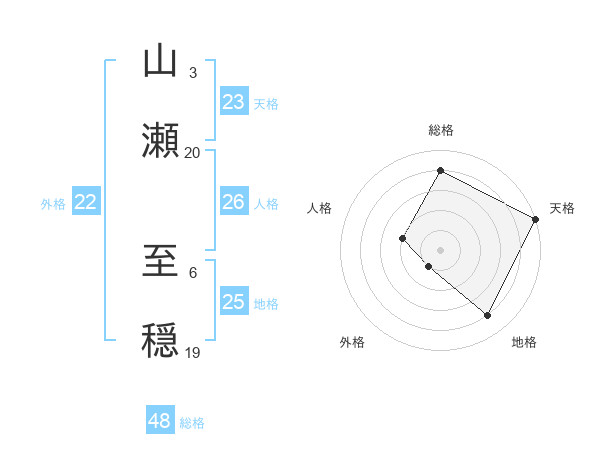 山瀬 至穏さんの天格は23画の5点!