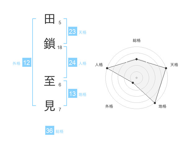 田鎖 至見さんを姓名の画数から五運を鑑定