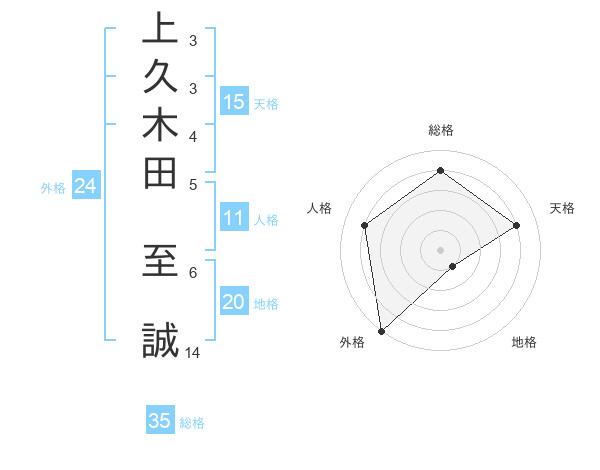 上久木田 至誠さんを姓名の画数から五運を鑑定