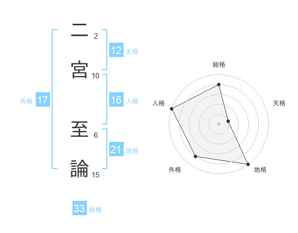 二宮 至論さんの地格は21画の5点!