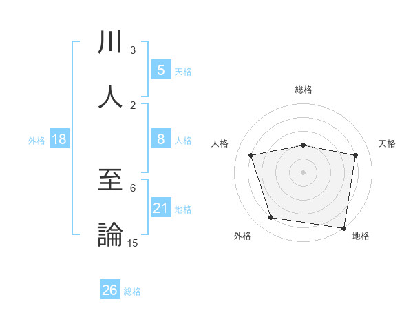 川人 至論さんを姓名の画数から五運を鑑定