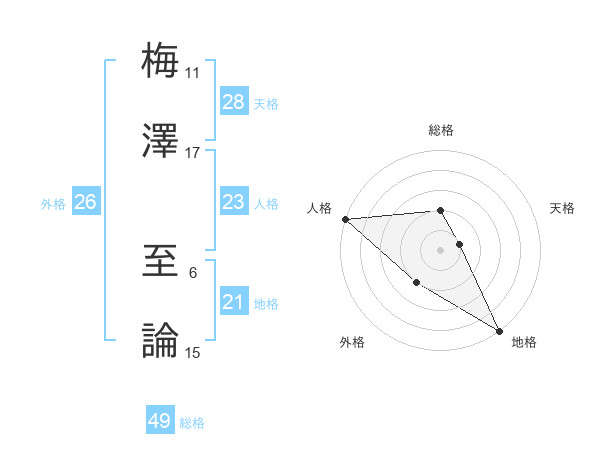 梅澤 至論さんを姓名の画数から五運を鑑定