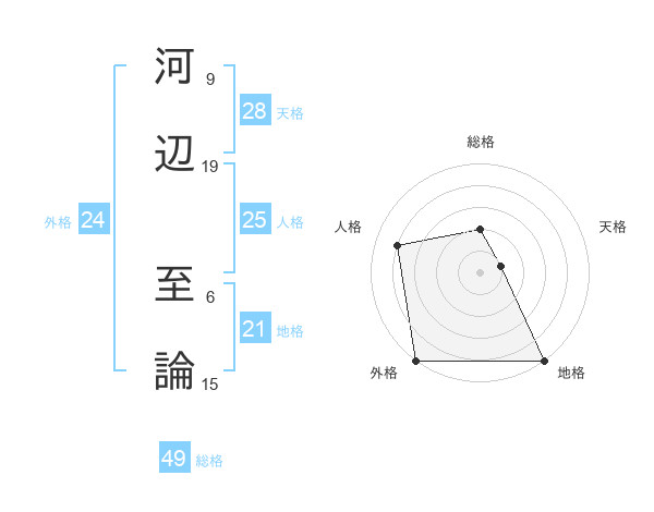 河辺 至論さんの外格は24画の5点!