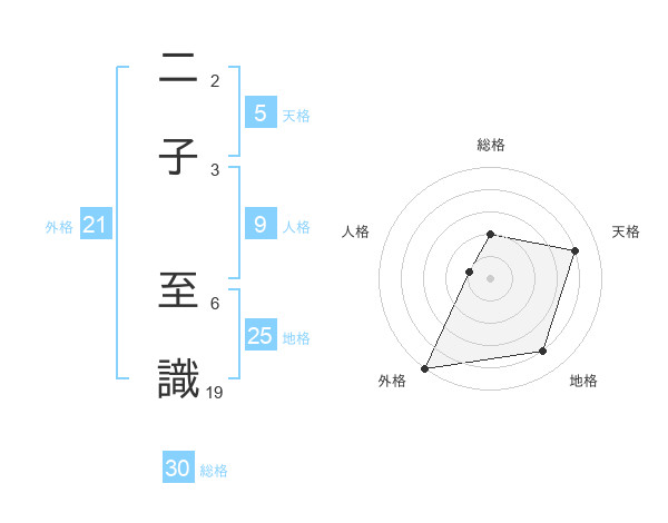 二子 至識さんの外格は21画の5点!