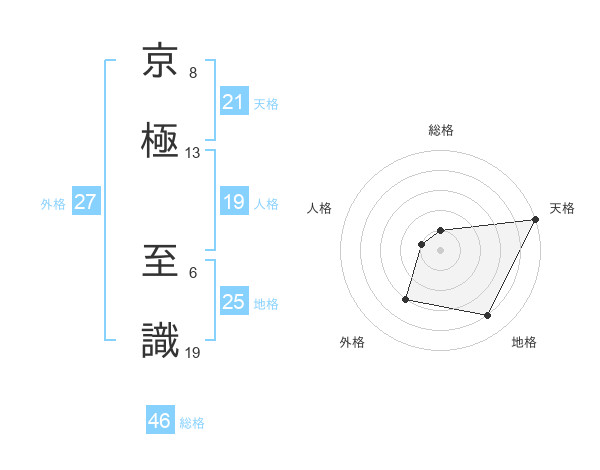 京極 至識さんの天格は21画の5点!