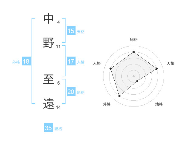 中野 至遠さんの総格は35画の4点!