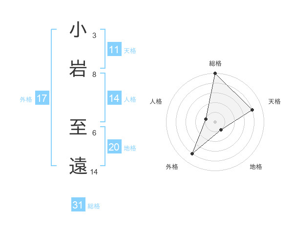 小岩 至遠さんの総格は31画の5点!