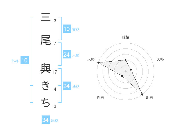 三尾 與きちさんを姓名の画数から五運を鑑定
