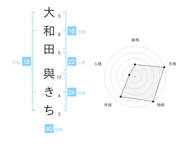 大和田 與きちさんを姓名の画数から五運を鑑定