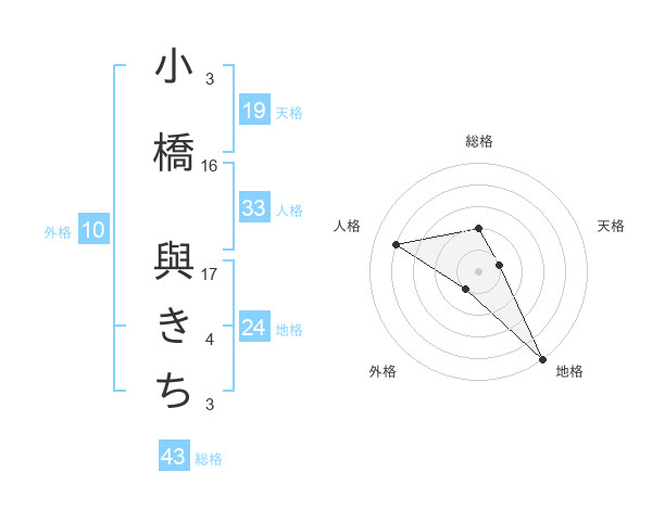 小橋 與きちさんを姓名の画数から五運を鑑定