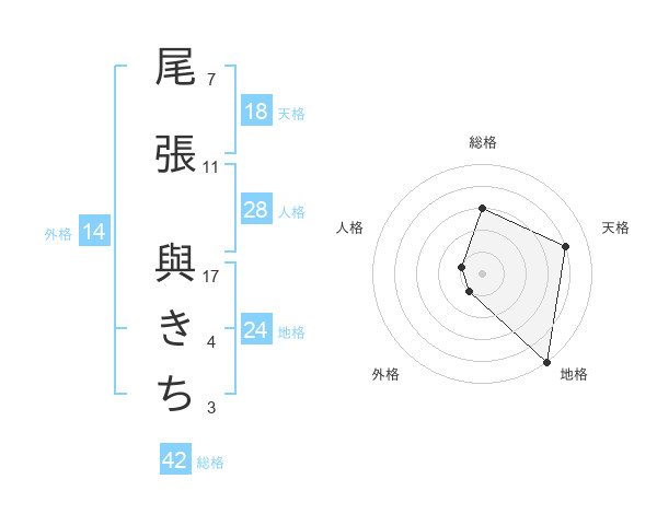 尾張 與きちさんの天格は18画の4点!