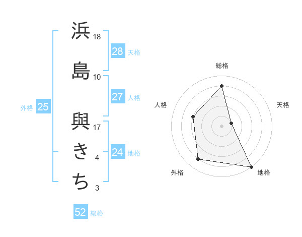 浜島 與きちさんを姓名の画数から五運を鑑定