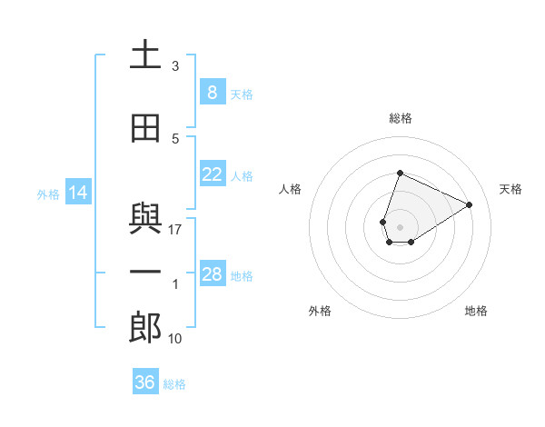土田 與一郎さんの天格は8画の4点!