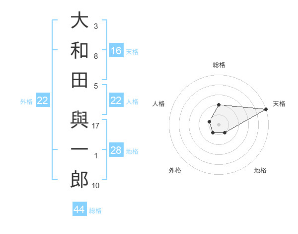 大和田 與一郎さんを姓名の画数から五運を鑑定