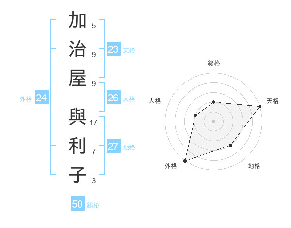 加治屋 與利子さんを姓名の画数から五運を鑑定