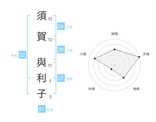 須賀 與利子さんを姓名の画数から五運を鑑定
