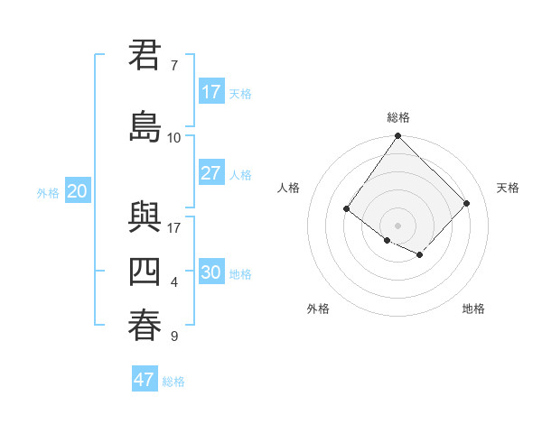 占い結果は姓名判断である以上、良い場合も悪い場合もありますが、決してお名前を誹謗中傷するものでなく、画数の自動計算によって得られたものです。また、本サイトの検索によって得られた鑑定結果で、第三者を誹謗中傷したり名誉を棄損するような行為を禁じます。