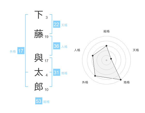 下藤 與太郎さんを姓名の画数から五運を鑑定