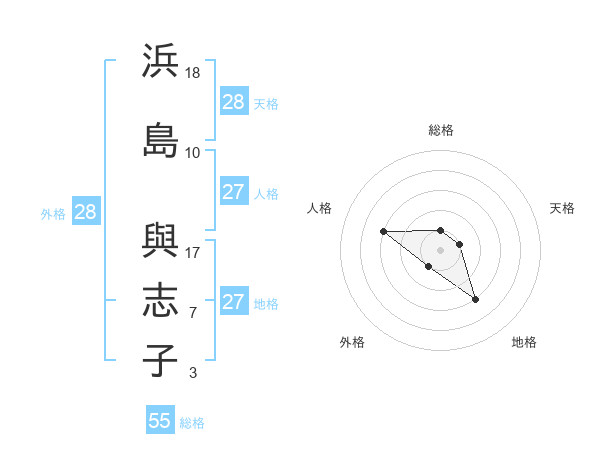 浜島 與志子さんを姓名の画数から五運を鑑定