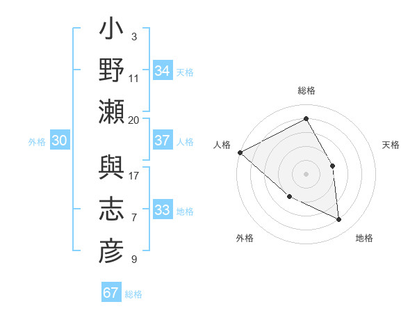 小野瀬 與志彦さんを姓名の画数から五運を鑑定