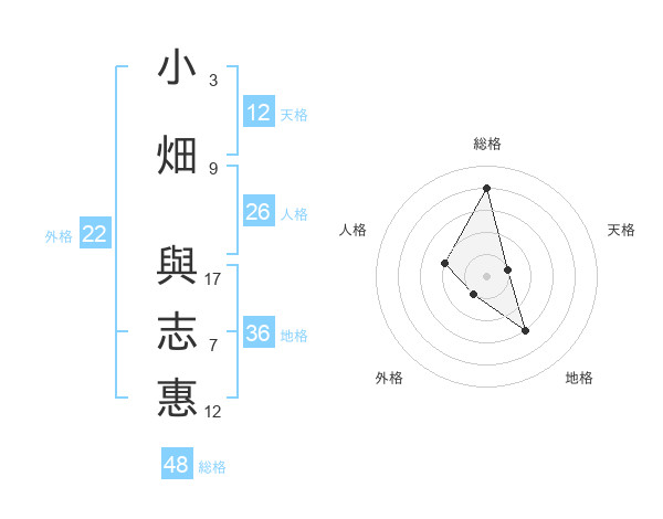 小畑 與志惠さんを姓名の画数から五運を鑑定