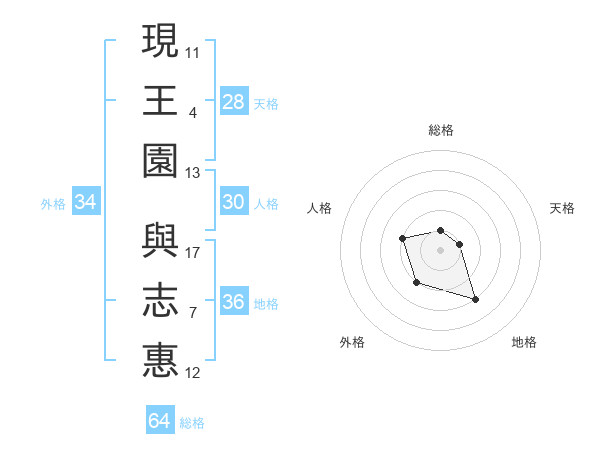 現王園 與志惠さんを姓名の画数から五運を鑑定