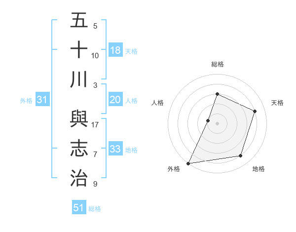 五十川 與志治さんを姓名の画数から五運を鑑定