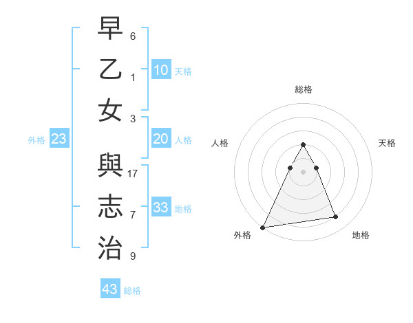 早乙女 與志治さんを姓名の画数から五運を鑑定