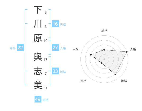 下川原 與志美さんを姓名の画数から五運を鑑定