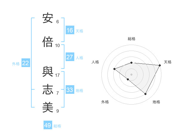 安倍 與志美さんを姓名の画数から五運を鑑定